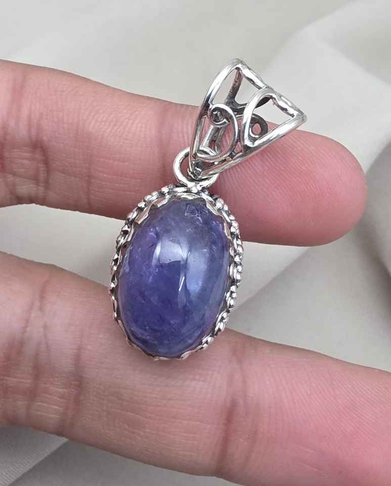 Natural Tanzanite Cabochon Pendant 925 Sterling Silver Handmade Blue Violet Gemstone Jewelry Gift