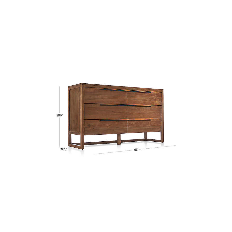 Product Name:Natural Teak Wood 6-Drawer Dresser for Bedroom