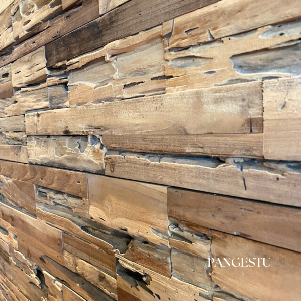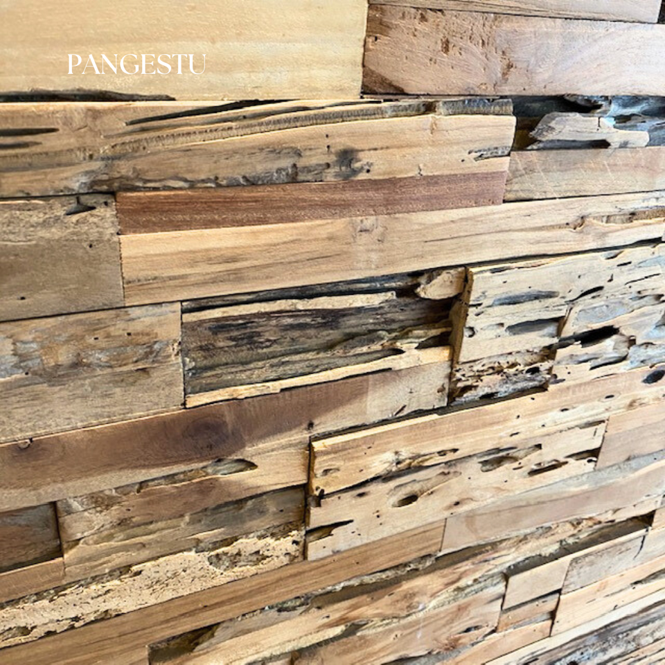 Feature:Wrinkle-Resistant, Anti-Slip, Made from 100% solid reclaimed teak wood, Organic shape blocks with deep 3D rustic texture, Handcrafted by experienced artisans