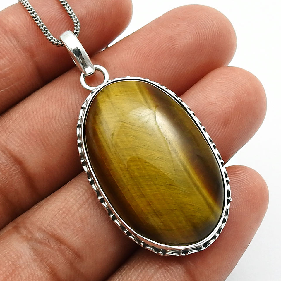 Natural Tiger Eye Gemstone Oval Shape Casual Pendant 925 Sterling Silver Classic Style Big Stone Handmade Jewelry Bulk Suppliers