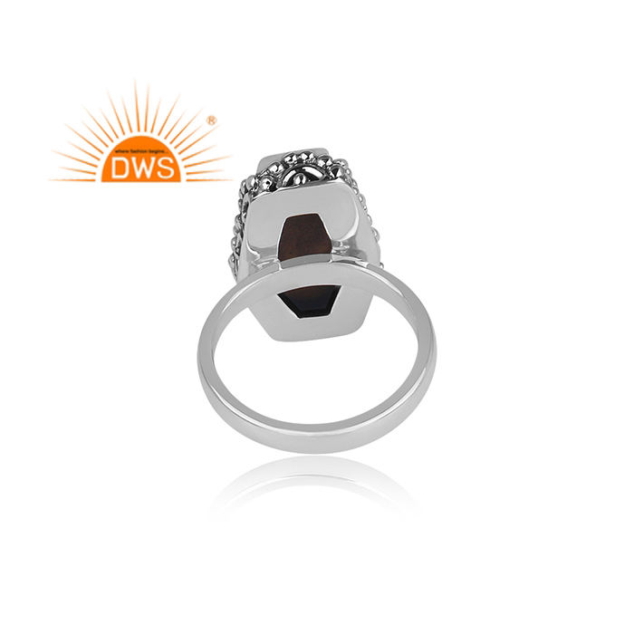 Natural Tiger Eye Gemstone Ring Jewelry Supplier Oxidized 925 Silver Handmade Coffin Ring Custom Jewelry Manufacturer
