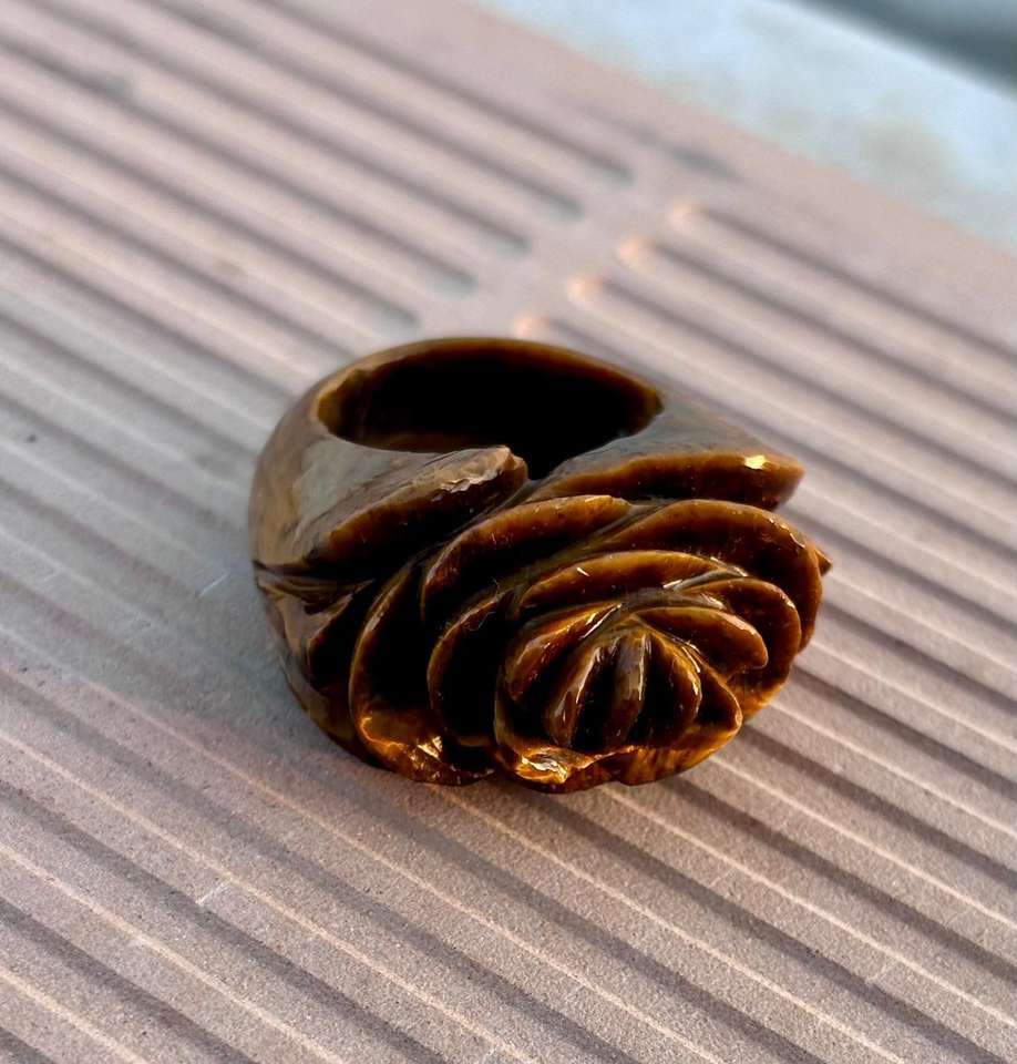 Natural Tiger Eye Gemstone Ring Of Flower Design Uniquely Designed Statement Ring Special Gift For Her Or Him