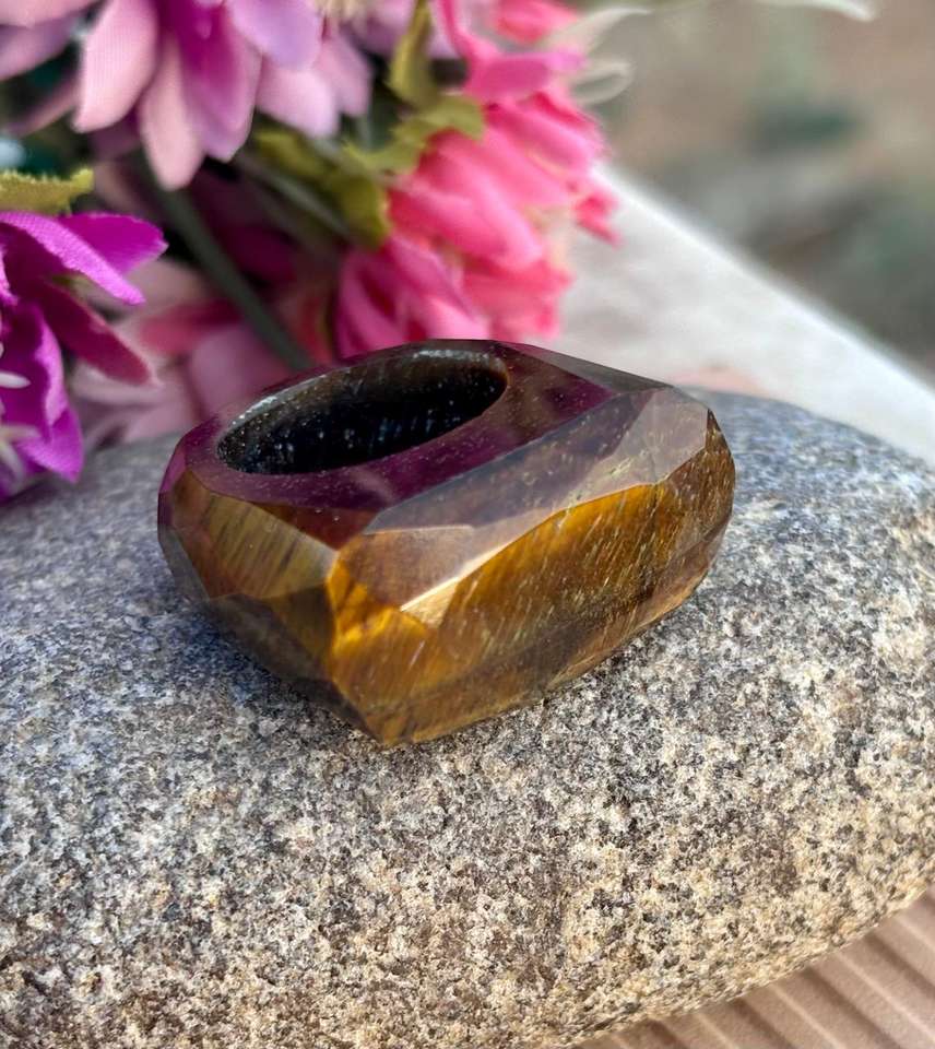 Natural Tiger Eye Gemstone Statement Ring Uniquely Designed Faceted Gemstone Ring For Women Or Men Special Gift For Her