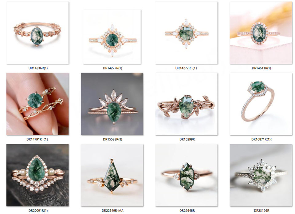Rose Gold Plated, Gold Plated, Silver Plated, Moss Agate Engagement Ring