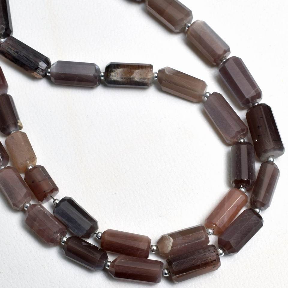 Natural Tube Shape Faceted Chocolate Moonstone Tubes Fancy Faceted Necklace Loose Wholesale Moonstone Pipe Tube Spacer Beads