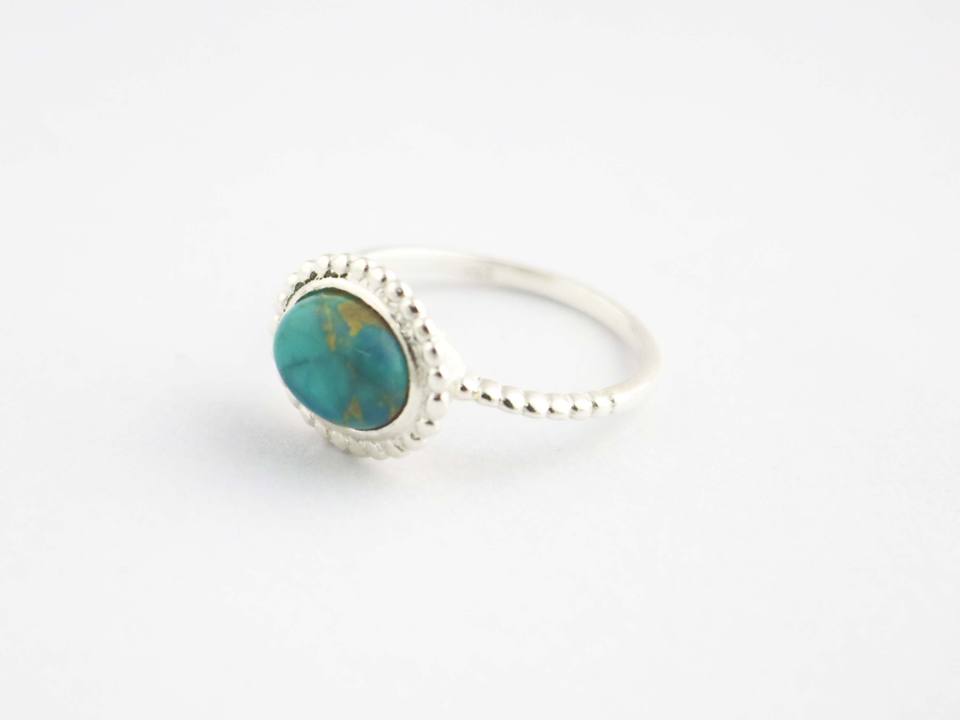 Natural Turquoise 925 Sterling Silver Handmade December Birthstone Stacking Oval Stone Ring