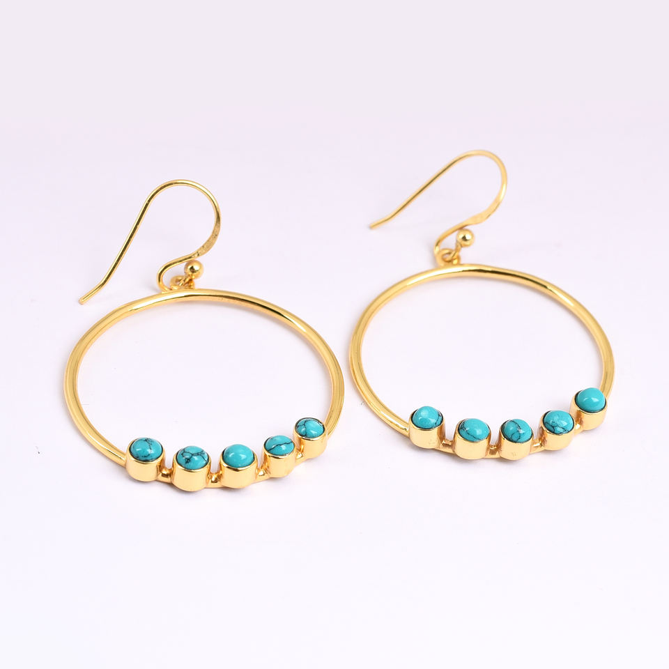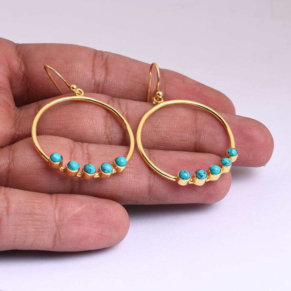 Natural Turquoise 925 Sterling Silver Round Earrings Jewelry