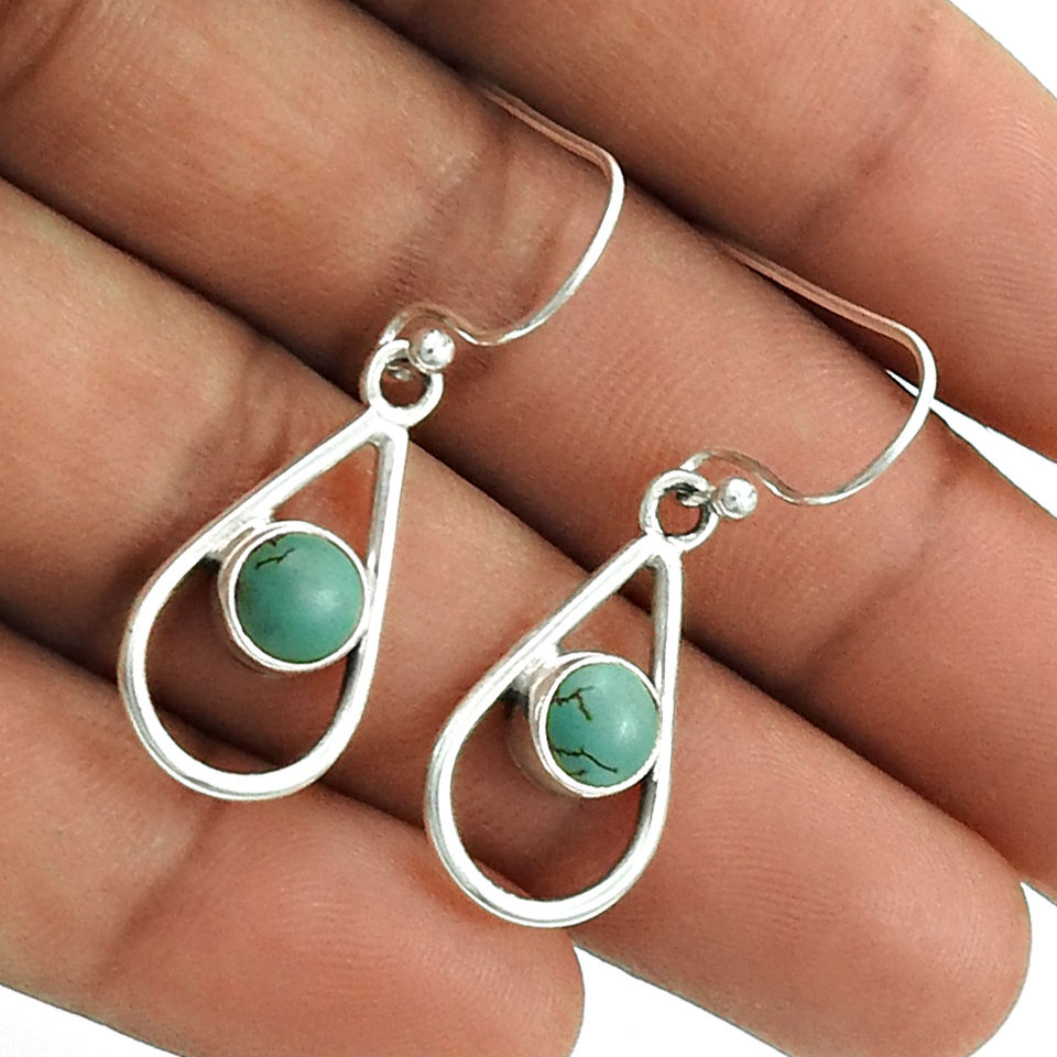 Natural Turquoise Gemstone 925 Sterling Silver Classy Dangle Earrings for Woman Girls Handmade Bohemian Jewelry Bulk Suppliers