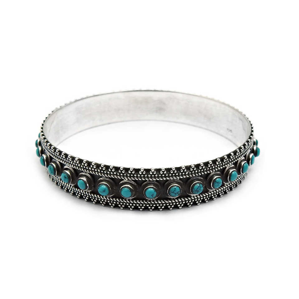 Natural Turquoise Gemstone Silver Bangle Crafted From 925 Sterling Silver Indian Bohemian Jewelry Bulk Sale On Wholesale Price