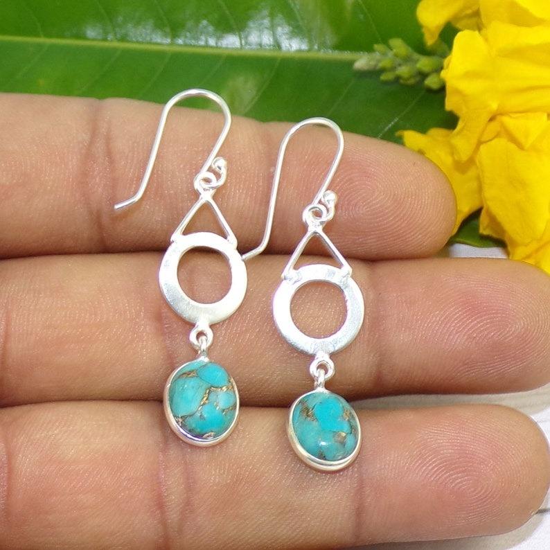 Natural Turquoise Gemstone Solid 925 Sterling Silver Handmade Fine Silver Stud Earring Jewelry Solid 925 Stamped Silver Jewelry