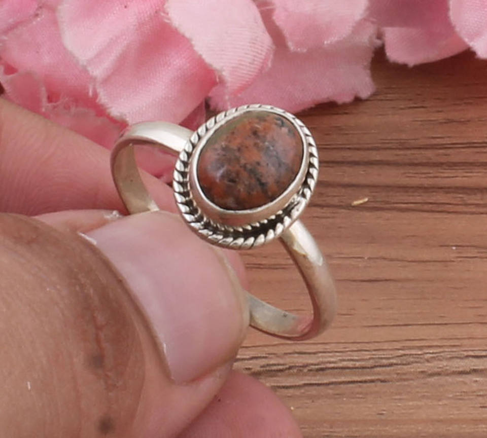 Natural Unakite Sterling Silver Handmade Electroformed Unique Boho Statement Rustic Gemstone Band Ring Wedding Gift Her