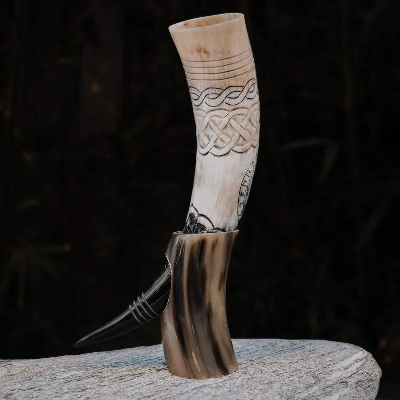 Viking Drinking Polished Ox Horn With Stand Best Quality Viking Drinking Horn Agate from India