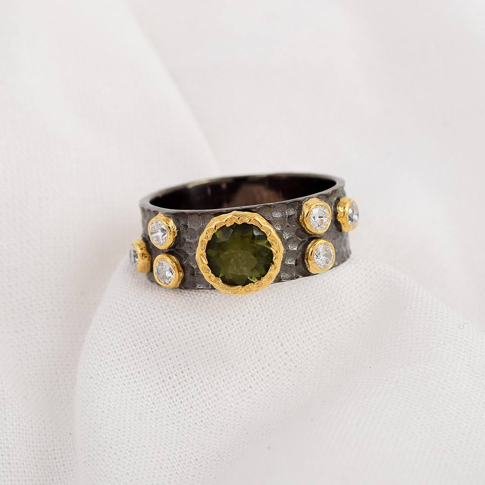 Natural Vintage Moldavite Gemstone Designer Ring 925 Sterling Silver Cubic Zirconia Stone Best Fine Jewelry for Women