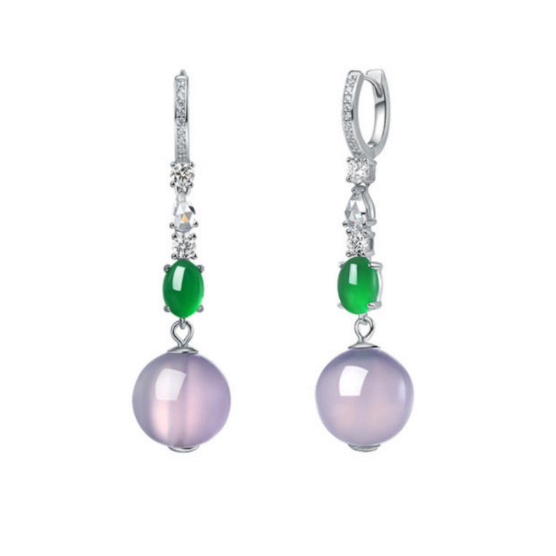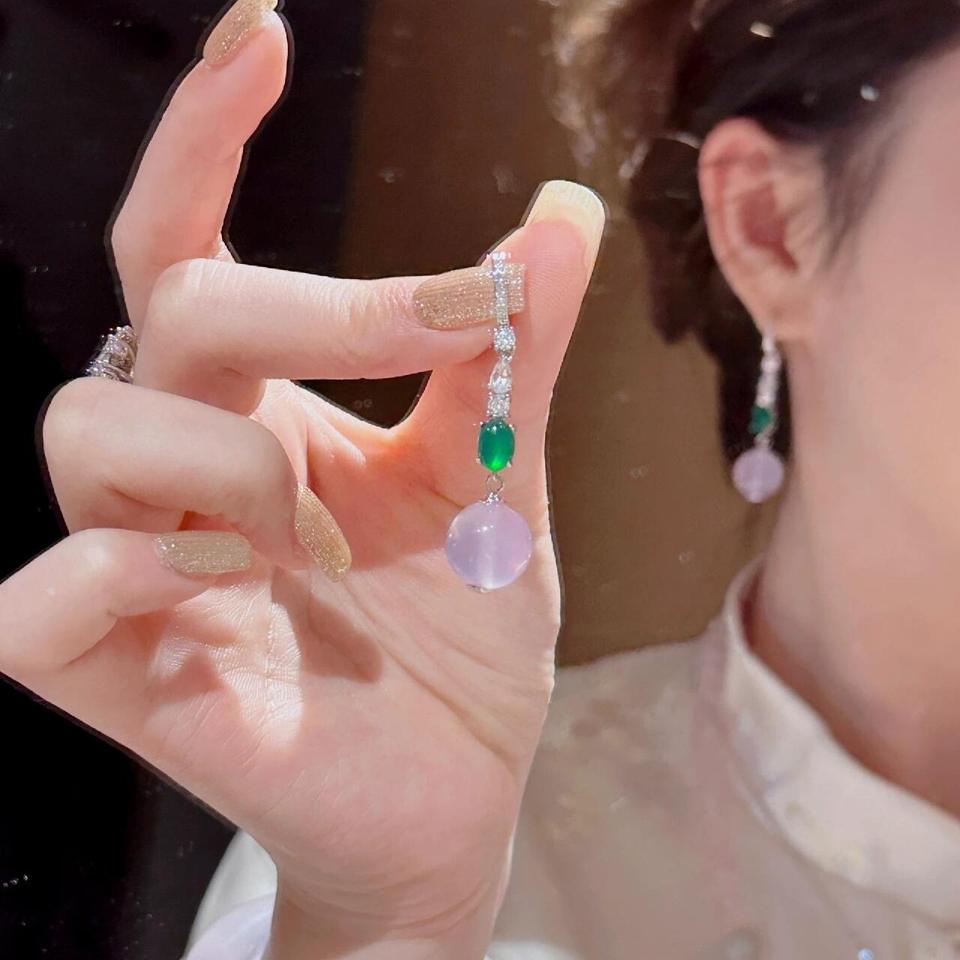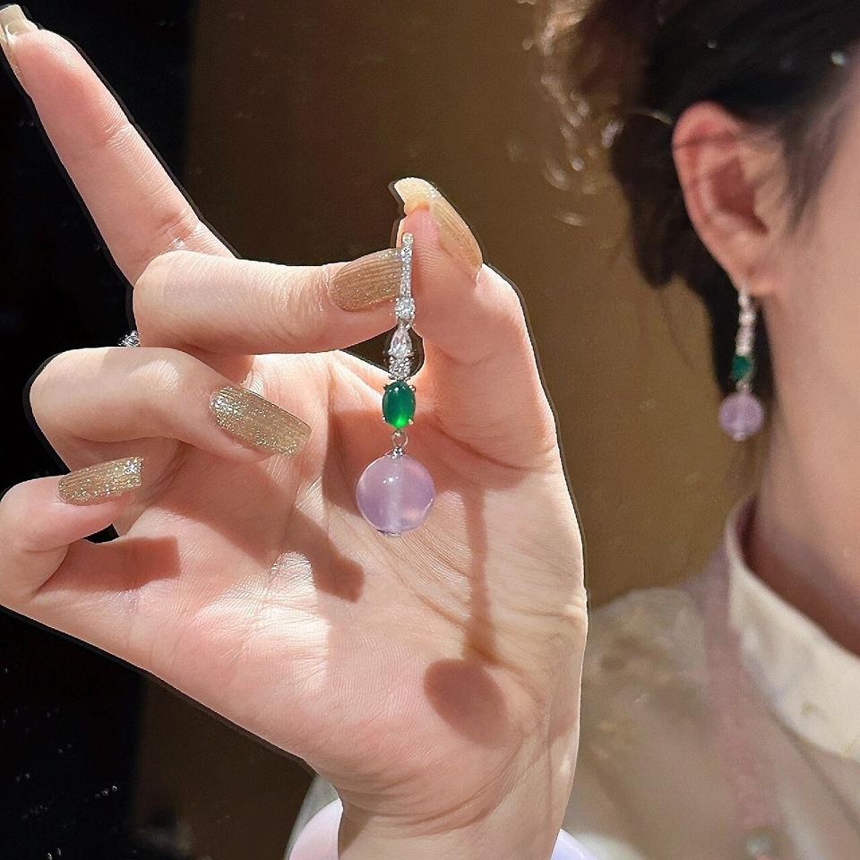 Natural Violet Purple Jade Marrow Bead Earrings S925 Pure Silver Hanfu Accessories Small New Chinese Style Fine Dangle Earrings