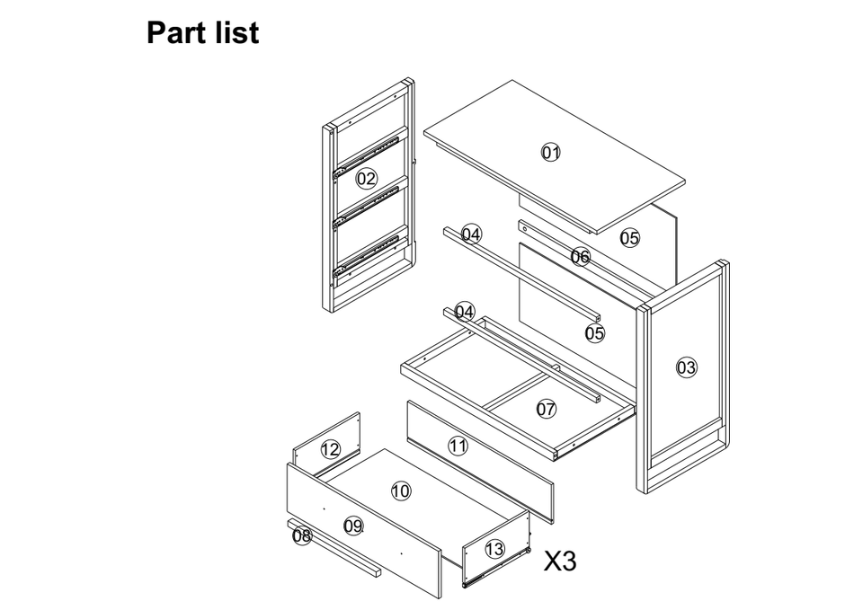 Natural White 3-Drawer Wood Storage Chest Cabinets with Handles for Bedroom or Bed Use in Dining or Living Room
