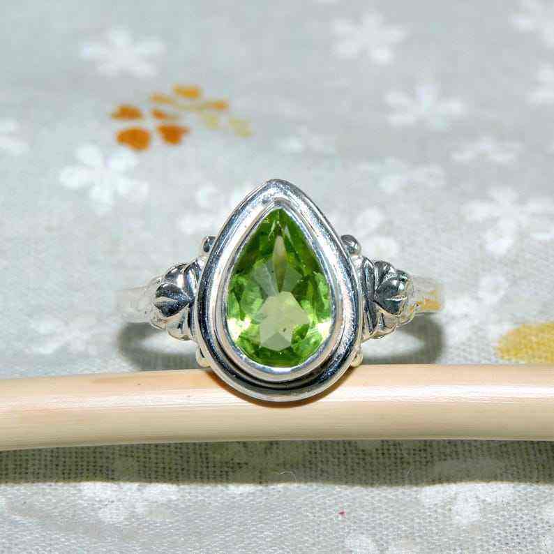Handmade Teardrop Peridot Ring 925 Sterling Silver Natural Green Gemstone Jewelry Size UK Q US 8 EU 57