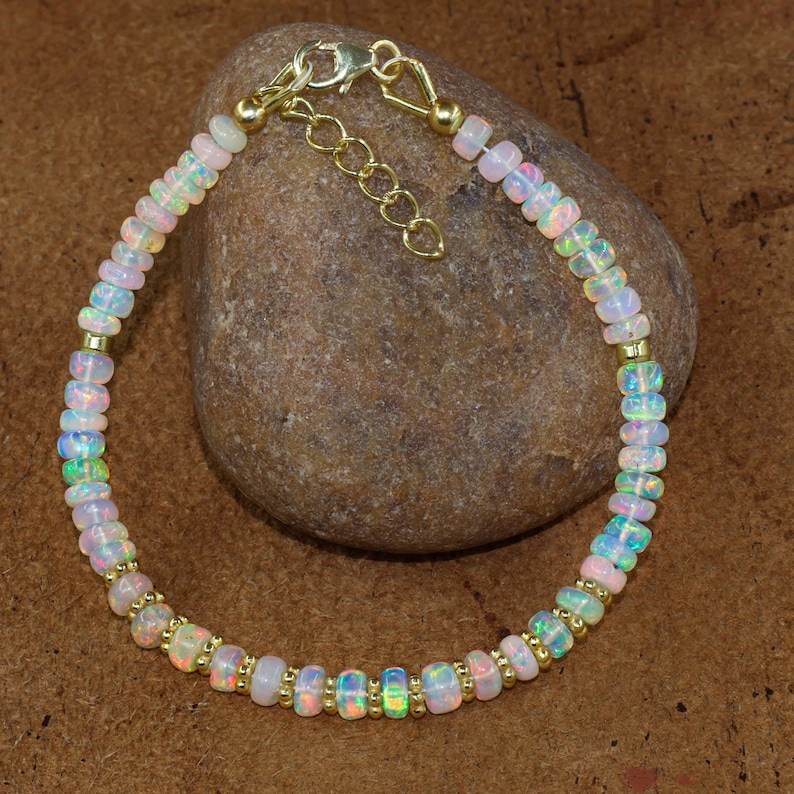 Keyword:White Fire Ethiopian Opal Beaded Glowing Expansive Bracelet Crafted