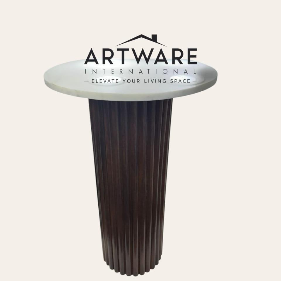 Natural White Marble Wooden Walnut Side Table with Toronto Marble Top Round Top Minimalist Accent for Living Room Trending Wood