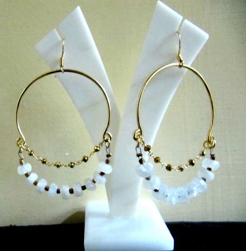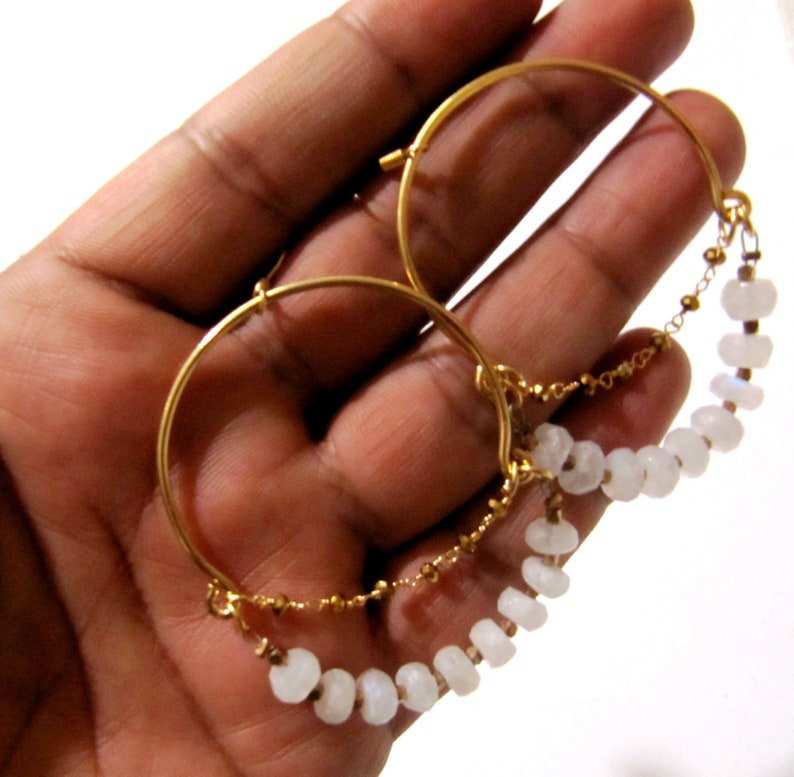 Natural White Moonstone Rondelle Faceted 7-8mm Gemstone Gold Plated Hoop Earring Wholesale Prices Handmade Hand Crafted Jewelry