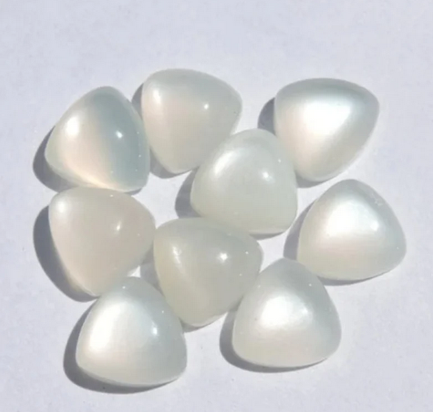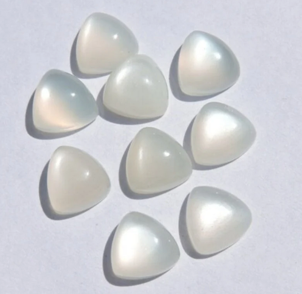 Natural White Moonstone Trillion Flat Back Cabochon Gemstone for Jewelry Making Like Rings Bracelet Anklet Necklace