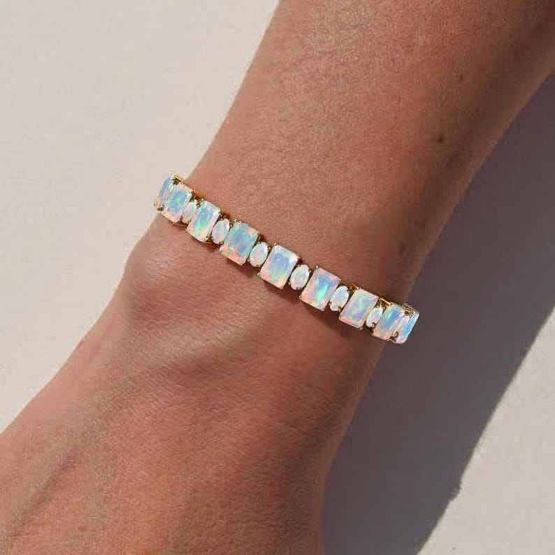 Keyword:White Opal multi fire Tennis Glowing Bracelet Crafted