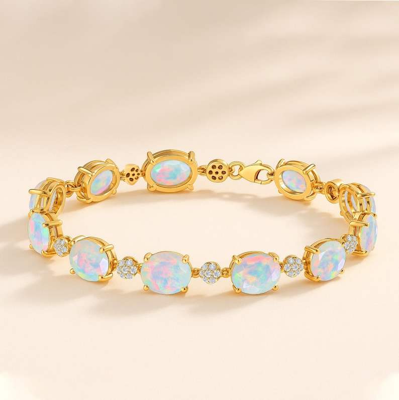 Keyword:White Opal multi fire Tennis Glowing Expansive Bracelet Crafted