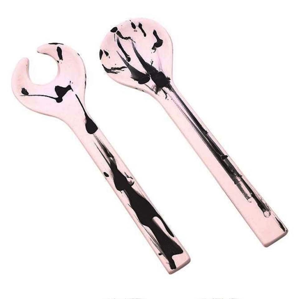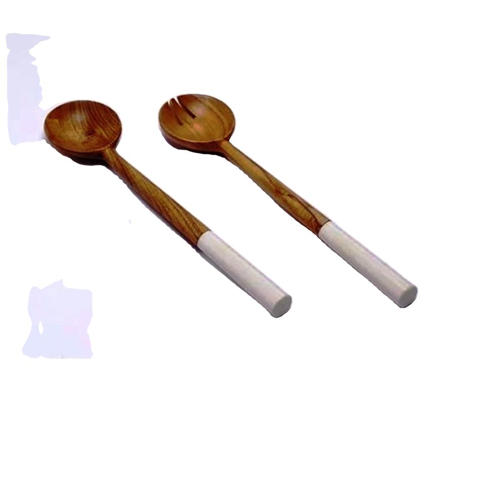 Natural White Resin Wooden Salad Servers With Resin SALAD SERVER SET HANDMADE INDIAN PRODUCT FACTORY RATE AVAILABLE