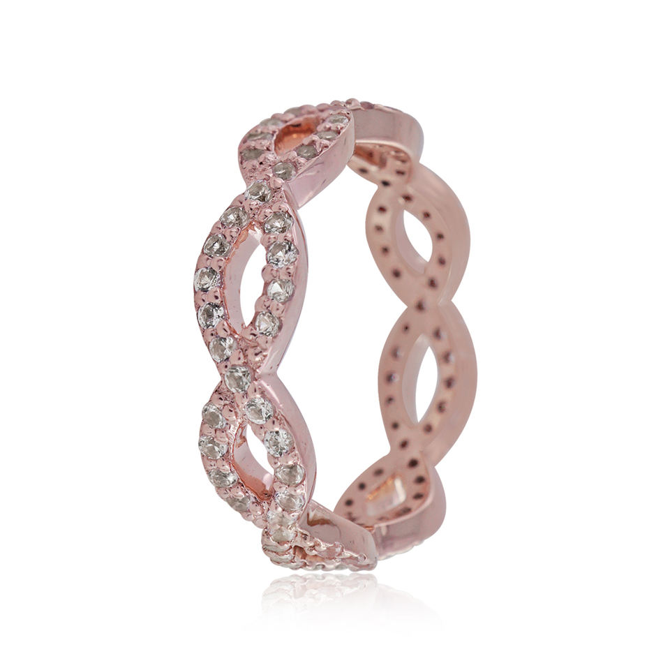 Natural White Sapphire Pave Designer Band Ring 14k Rose Gold Handmade Fine Jewelry Stack Ring New Arrivals