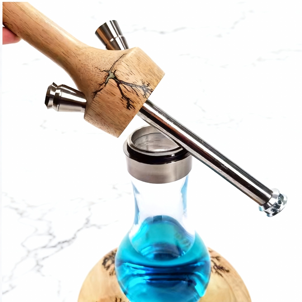 Natural Wood Accent Chicha Hookah Shisha Hookah Set With Blue Glass Gathering Smoking Shisha Hookahs