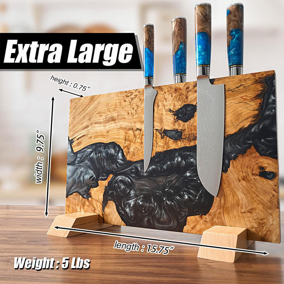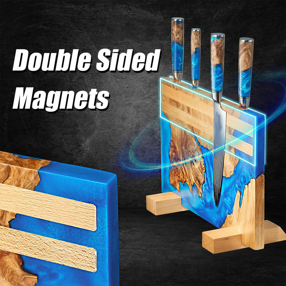 Natural Wood Blend Large Magnetic Knife Block Universal Epoxy Resin Wooden Magnetic Knife Holder Magnet Knives Storage Rack