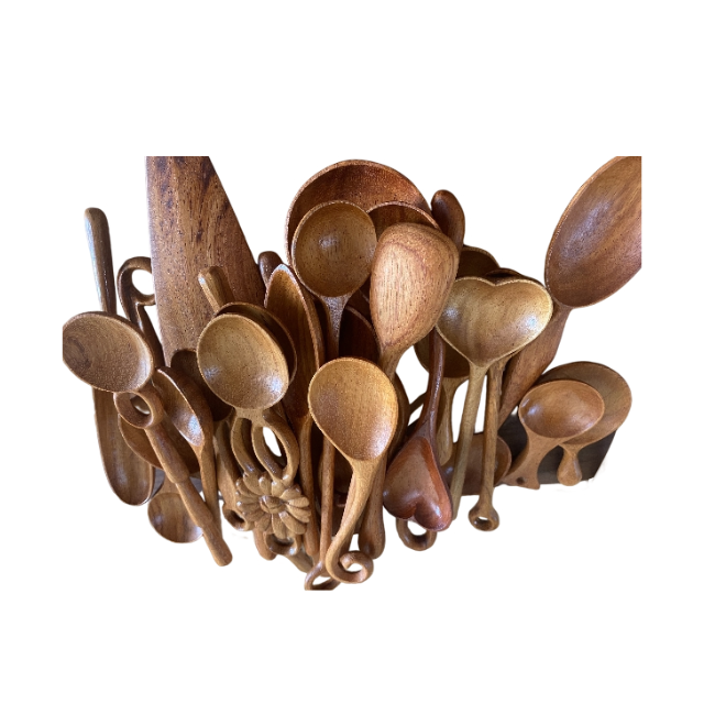 Natural Wood Cooking Spoon Set - Long Handle Kitchen Utensils for Stirring, Mixing, Serving - Handcrafted Quality