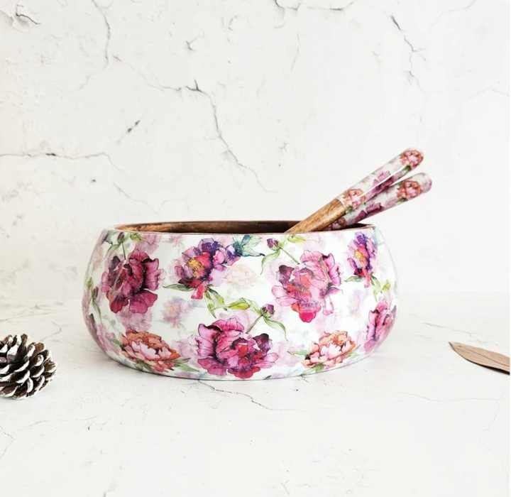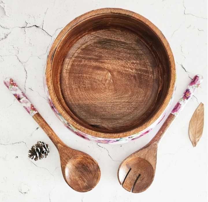 Eco-Friendly Natural Wood Enamel Bowl Smooth Handmade Tableware for Salad Smooth Cookware Set Party Occasion