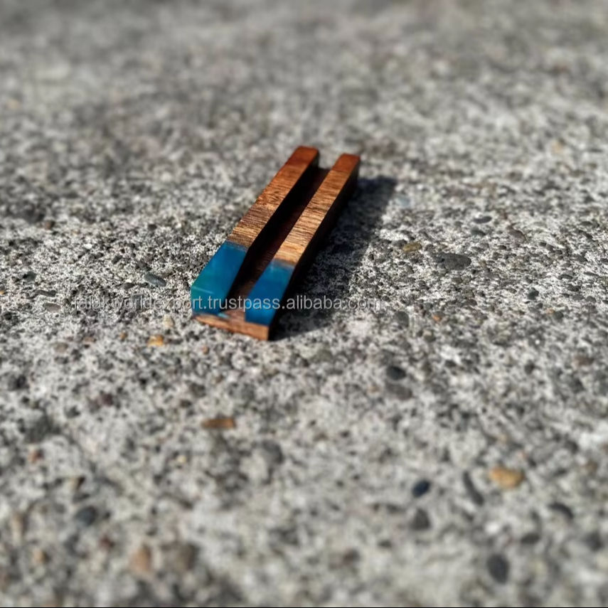 Natural Wood & Epoxy Resin Business Card Holder Customizable Epoxy Resin Office Accessory by Falak World Export