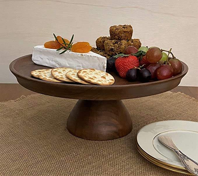 Natural Wood Multipurpose Cake Stand Cupcake & Wedding Platter with Turntables Wooden Cake Holder
