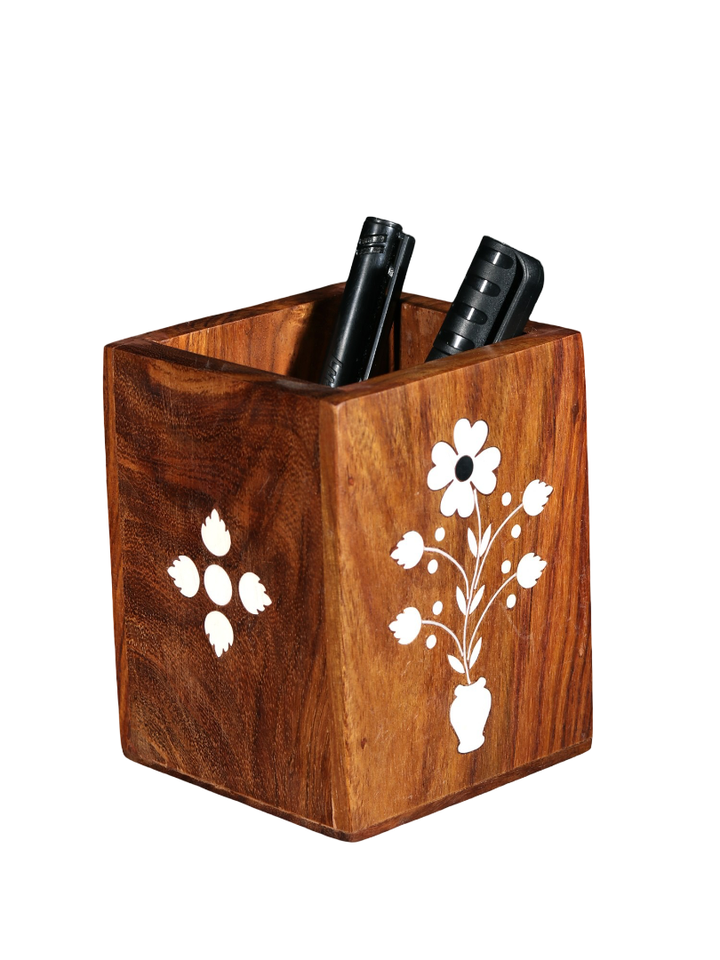 Natural Wood Pencil & Pen Storage With Brown Finished Multiple Use Stationary Organizer Wood Pen Holder Office School Supplies