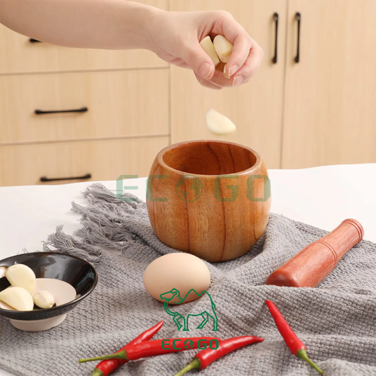 Natural Wood Pestle Mortar Bowl Set Guacamole & Garlic Pepper Press Mincer Grinder Chopper Crusher Kitchen Tool Custom Packaging
