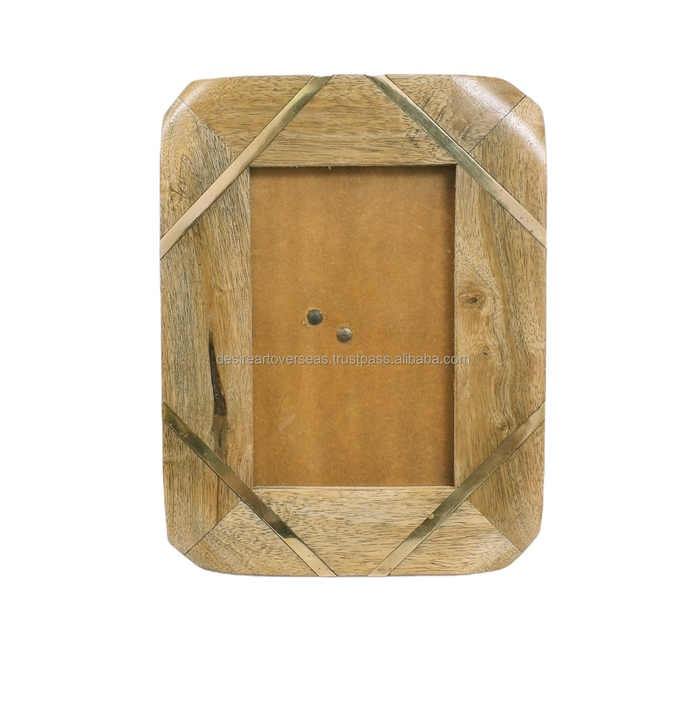 Natural Wood Photo Frame High Quality Brass Metal for Home Decor Tableware and Wall Display