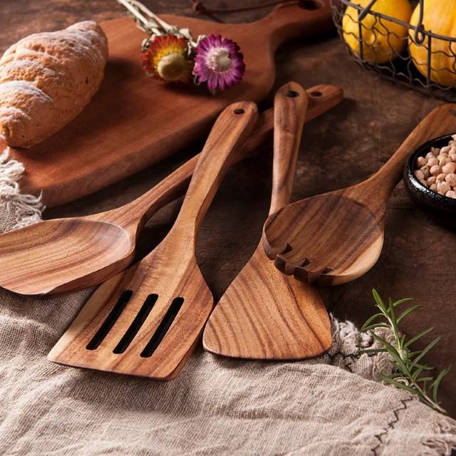 Natural Wood Spoon Acacia Kitchen Utensil Cooking Serving Soup Stirring Spoon Teak Wood Tableware Long Handle Nonstick Cookware