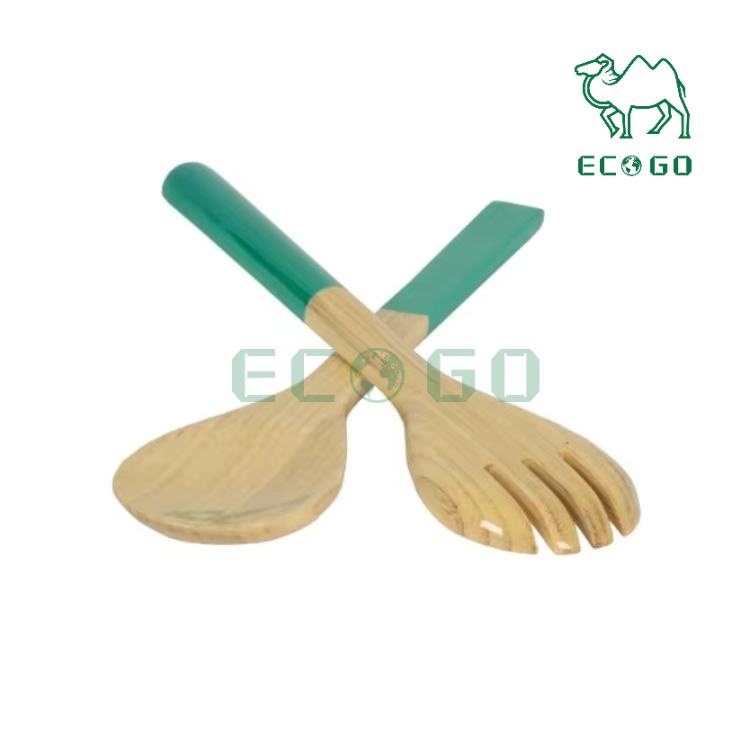 Natural Wood Spoon Bamboo Salad Server Spoon and Fork Handmade for Home Kitchen Utensils Set