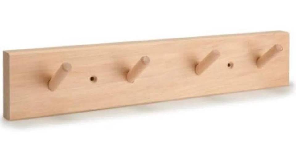 Natural Wood Flower Pattern Wall Organizer Rack with 6 Hooks for Clothing-Waterproof & Multifunctional