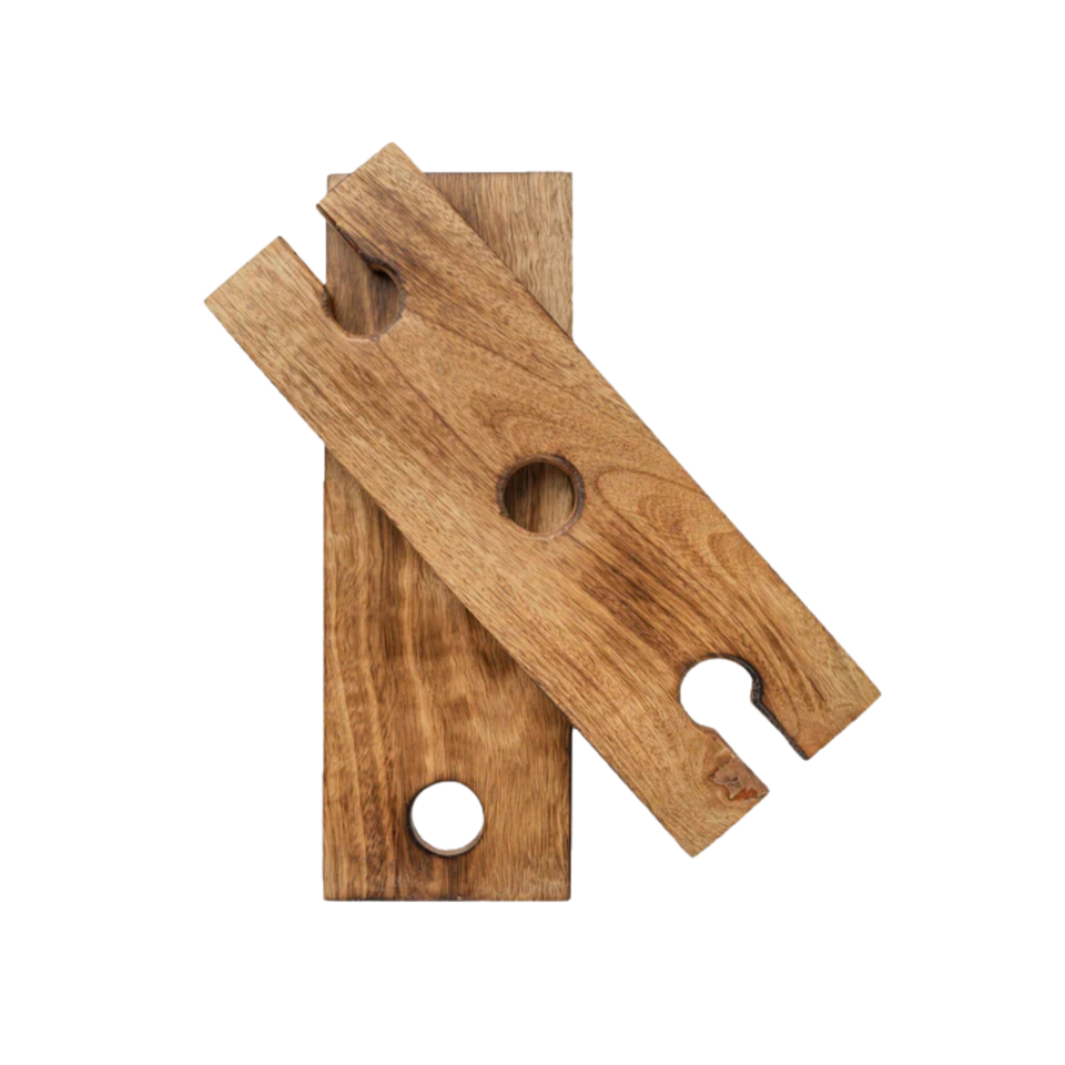 Natural Wood Wine Caddy & Tray Set Wooden Glass Cup Holer