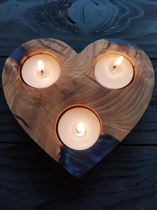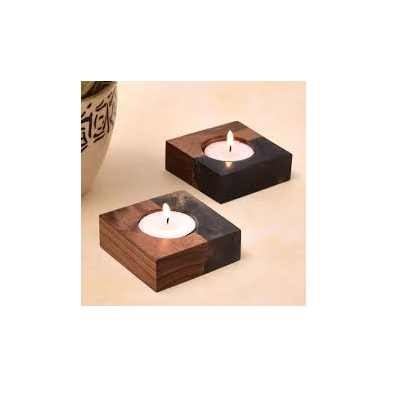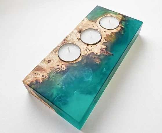 Natural Wood and Epoxy Resin Handmade Candle Holder for Aromatherapy and Relaxation