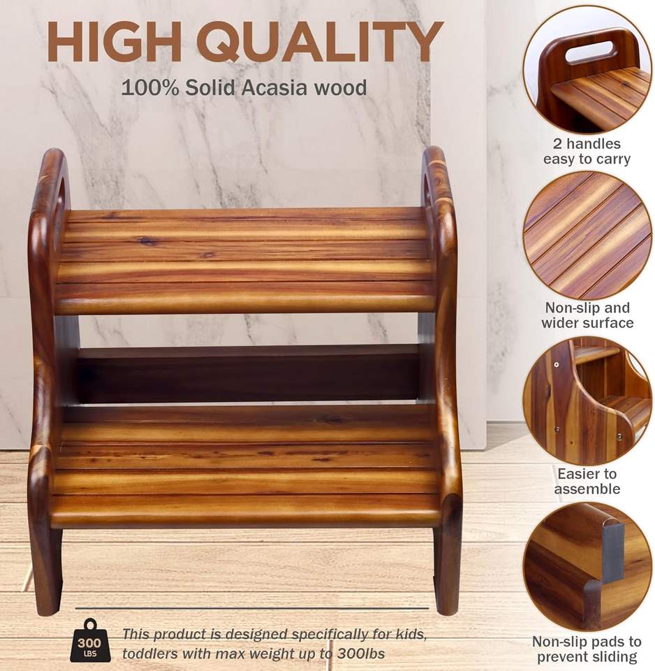 2-Step Natural Wooden Acacia Stool for Kids and Adults for Sofa Bed & Toilet Use Bath & Potty Product
