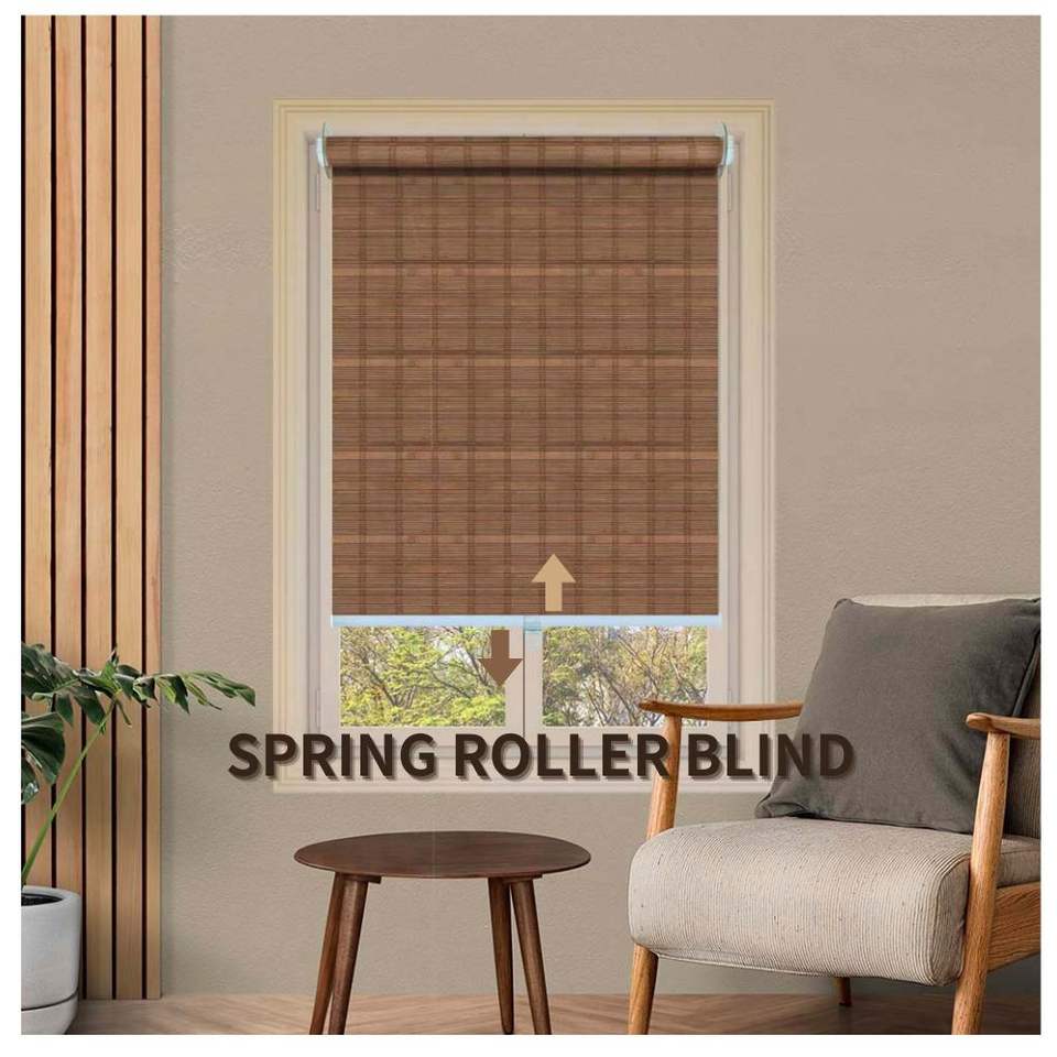 Natural Bamboo Blind Material Built-In Roller Blinds for French Windows with Plain Technique Customizable Wide Blade Design