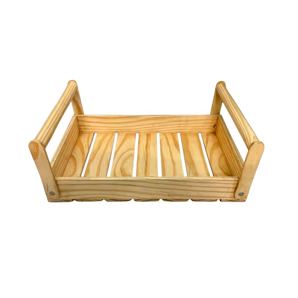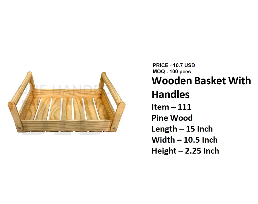 Natural Wooden Basket With Side Handles For Country Style Storage Home Use Event Decor Or Party Presentation Indian Supplier