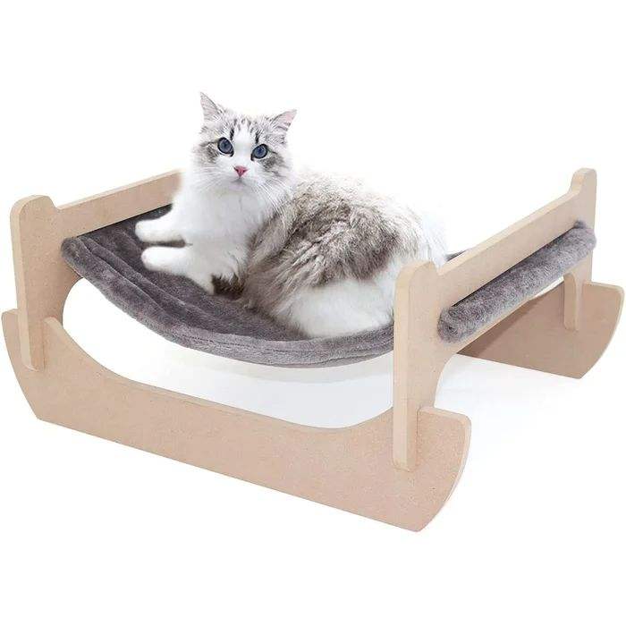 Natural Wooden Cat Sleeping Bed Luxury Gift for Pet Lovers with Soft Pad Floor Stand Hammock Sofa Indoor Cat Bed