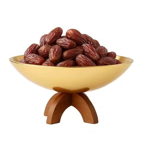 Natural Wooden Date Bowl with Golden Root Stand Islamic Gift Server for Ramadan Eid Party Tray