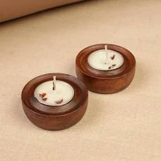 Natural Wooden Mango Wood Tea Light Candle Stand with Tree Bark Home Decoration Candle Holder