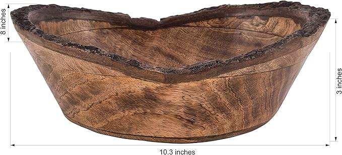 Natural Wooden Tray, Serving Bowl for Salad, Veggies and Fruits, Large Deep Tray for Family, Party (Bark Edge Wavy Bowl)