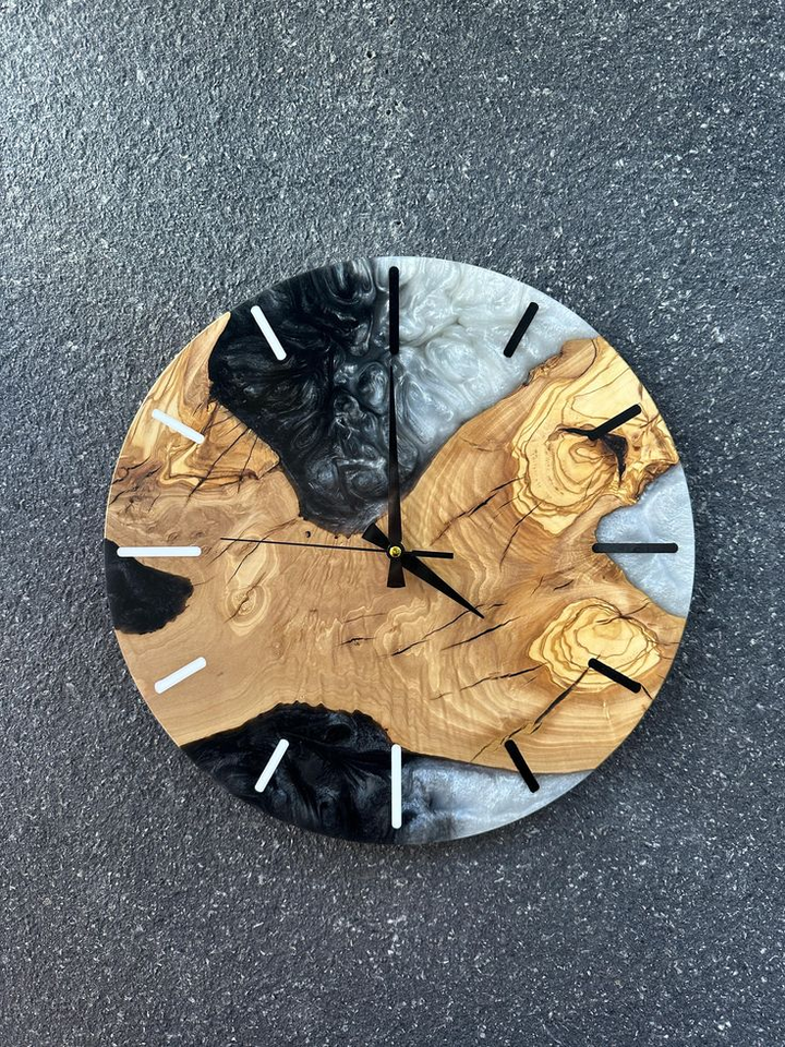 Natural Wooden with Blue Epoxy Resin Combination Watch Wall Clock for Home Office Decor From India